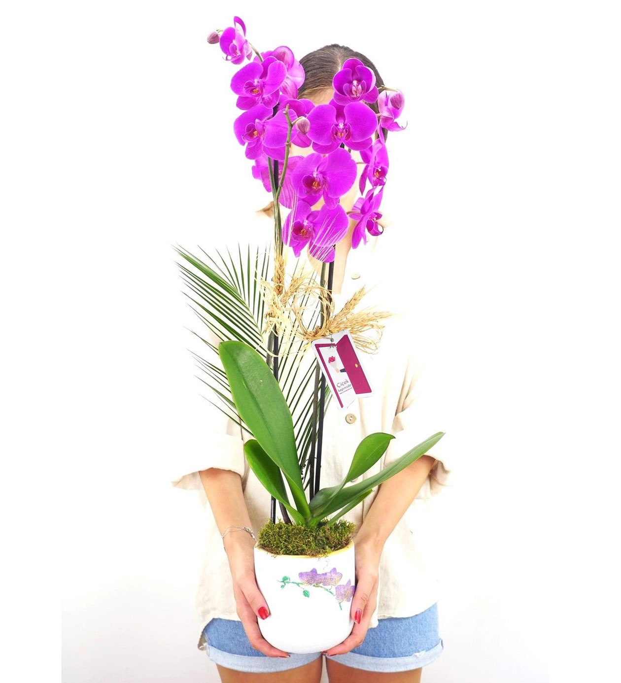 '' Orkide Beyaz Saksıda Mor Orkide Tasarım ''serimiz sizlerin ve sevdiklerinizin masasında çok şık duracak artık sizlerinde kapısında!